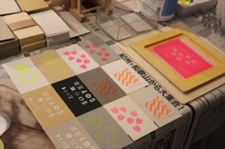 レトロ印刷の紙を使った缶バッヂ作り、シルクスクリーン技術を使ったしおり作りのワークショップも体験できる。
