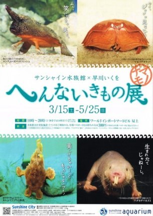 まさしく、これから私が取材に行こうとしているイベントじゃないか。‘へんないきもの’展だし、へんで良いんだけど、何となく知り合いがバカにされたような気分になってしまう。『笑ってるけど、キミタチも他の生物から見たら‘へんないきもの’かもしれないよ~?』とか思ってみたり。