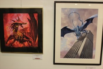 ‘怪獣絵師’こと開田裕治さんの作品。ビルに舞い降りた巨大なドラゴンは、特撮のワンシーンそのもの。ものすごくカッコいい。咆哮やビルの壁面を爪が削る音まで聞こえそう。