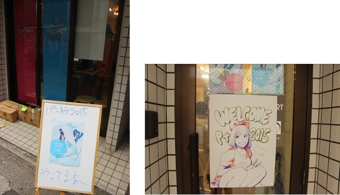 会場のPhotons Art Galleryは浅草橋駅から徒歩1分もかからない。住宅街の路地に面した建物の前には『パンチラ2015やってるよ』の看板。偶然通りがかった奥様が2度見していた。