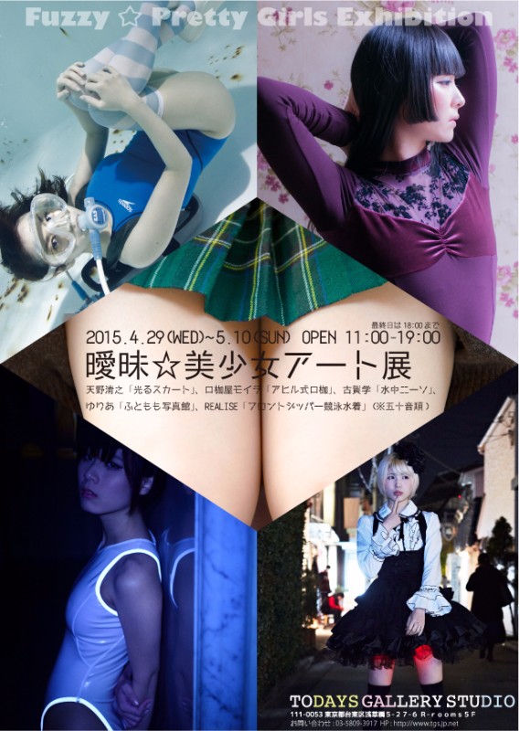 浅草橋・TODAYS GALLERY STUDIOにて、“水中ニーソ”、“フロントジッパー競泳水着”、“ふともも”、“絶対領域光るスカート”などをテーマにした『曖昧☆美少女アート展』が開催中です。