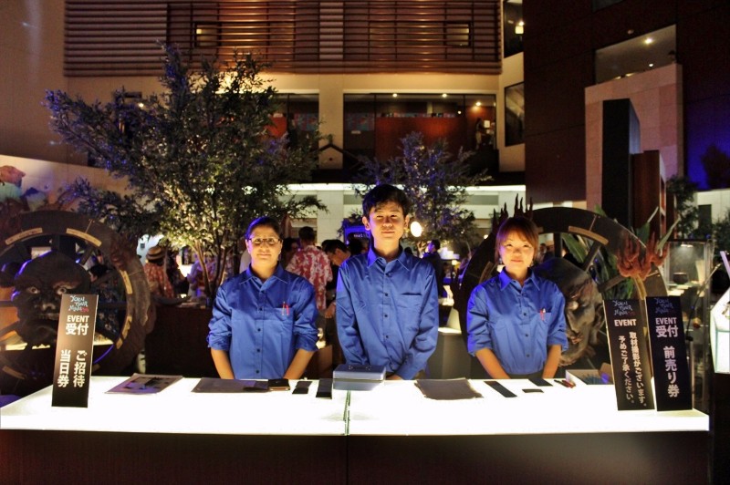 受付嬢はろくろ首さん? いきなりの妖怪登場に『ちょっと怖いな……」と、ビクビク。すると「受付はこちらです!」と、爽やかなお兄さんとお姉さんたちが出迎えてくれた。