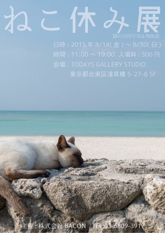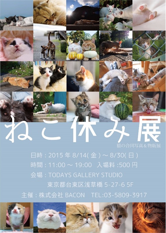 人気の猫アーティスト16組が夢の競演。可愛いネコたちの写真やグッズを見れば、夏休みがない悲しさもふっとびそうです!!
