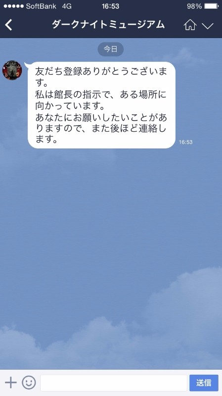 今回のイベントは、LINEアプリを使って行います。まずはQRコードを読み込み、「ダークナイトミュージアム」と友達になります。