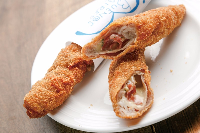 生ハムとニンニクを豚肉で巻いたロールカツ。かぶりつくIKKOさん