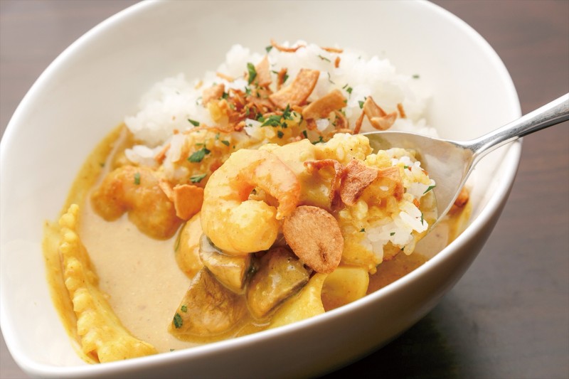 AJO(アホ)はスペイン語で「にんにく」という意味。ココナッツミルクカレーはこのイベントオリジナルだそう。
