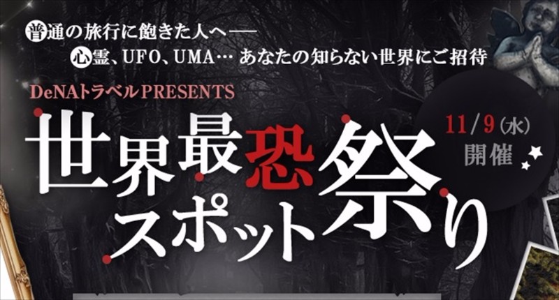 心霊、UFO、UMA、超古代文明……一般的にはオカルトと呼ばれるジャンルだが、熱狂的なマニアがいることも事実。果たして、世界で最も恐いスポットとはどこなのか? そんな怪しいトークイベント「DeNAトラベルPRESENTS 世界最恐スポット祭り」が開催された。