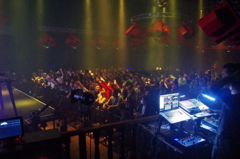 しかも、たまに“プシュー!”と煙が放たれ、いつになっても視界が遮られっぱなしだし。前方のステージでDJが我々を煽る姿はおぼろげながら見えますが、確かなものではありません。