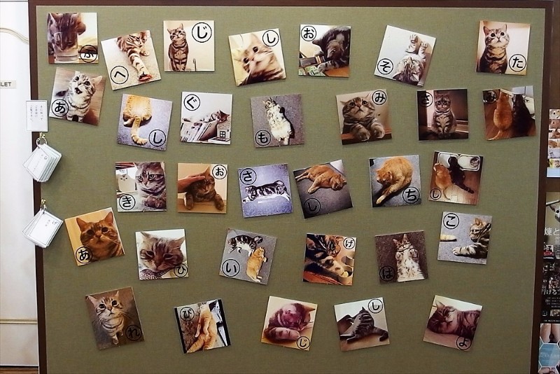 猫写真の「かるた」を発見。初展示となるmatsumotooooooさんの「きなごむカルタ」。可愛らしい猫ちゃんの写真に1文字が書かれている。こちらが絵札というわけだ。