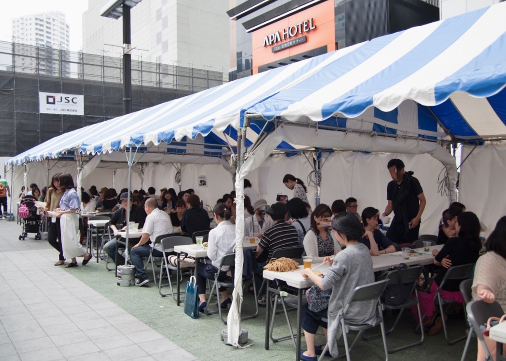 新宿という場所柄か、お昼を過ぎてもひっきりなしに人が訪れます。近所の会社にお勤めらしき人が、パクチー焼きそばを持ち帰りしていました。駅からも近く、遅い時間までやっているので、立ち寄りやすいのもこのイベントの魅力ですね。