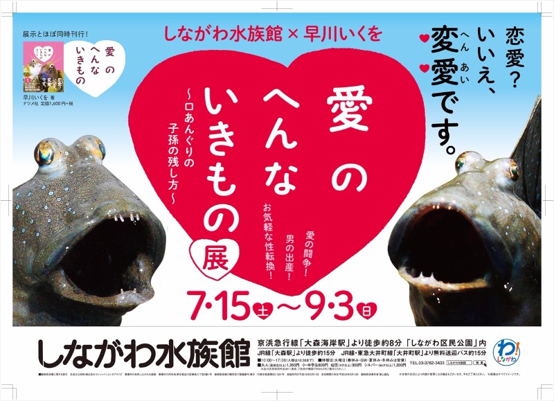 東京のしながわ水族館で、「愛のへんないきもの展」が9月3日(日)まで開催中です。このイベントは、いきものが子孫を残すために行う、ちょっとへんな愛の行動を紹介するもの。「へん」と「愛」がどう結びつくのか、色々気になります!