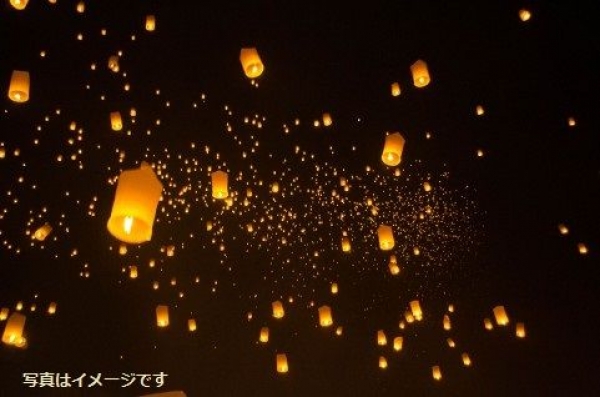 「天灯」という願いごとを託した大型のランタンが、一斉に夜空に放たれる。