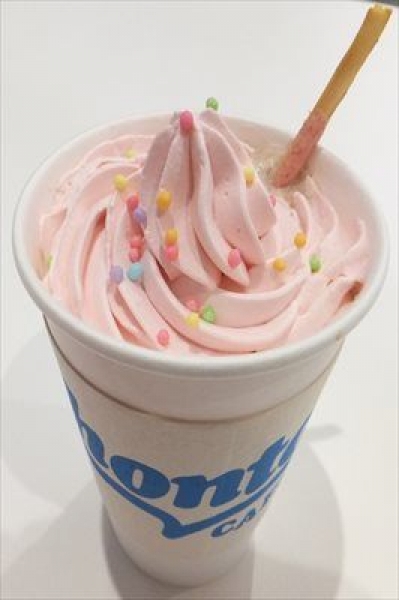 特製の魔法少女ココアは、ココアの上にストロベリー味のピンクのホイップと、トッピングが乗っています。これまた可愛い。テーブルとかも可愛いんですよー!!」