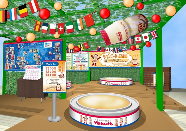 世界33の国と地域で愛されている、日本発の乳酸菌飲料『ヤクルト』。そして、人気温泉テーマパーク・箱根小涌園 ユネッサン。この2つがコラボしたお風呂が登場する。世界に広がる『ヤクルト』をイメージして、ヤクルトの色や香りをオリジナル入浴剤で再現した、スペシャルなお湯に浸かることが出来る。開催期間中はオリジナル入浴剤を使用するだけでなく、1日に4回、浴槽に巨大ヤクルトポットで入浴剤を投入するパフォーマンスも開催する。