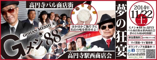 大好評で早くも第2回目の開催となったGメシ★88 in 高円寺。今回のイベントでは、レトロ情緒たっぷりの「高円寺駅西商店会」と、高円寺阿波踊り発祥の「高円寺パル商店街」が夢の狂宴(共演)。