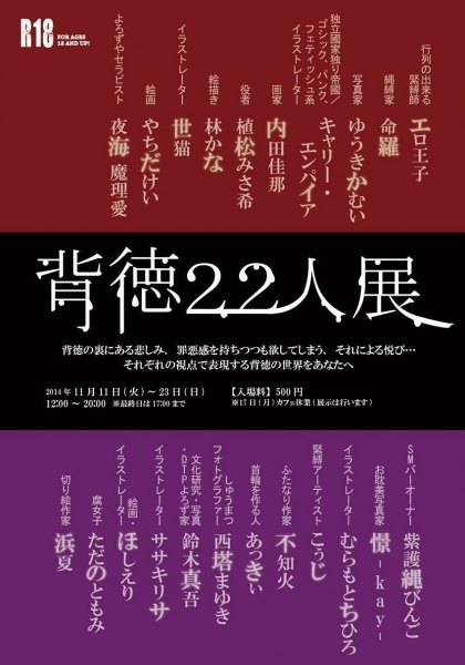 22名のアーティストがそれぞれの世界観から『背徳』を表現!「背徳」・・・道徳にそむくこと。「―行為」「―者」