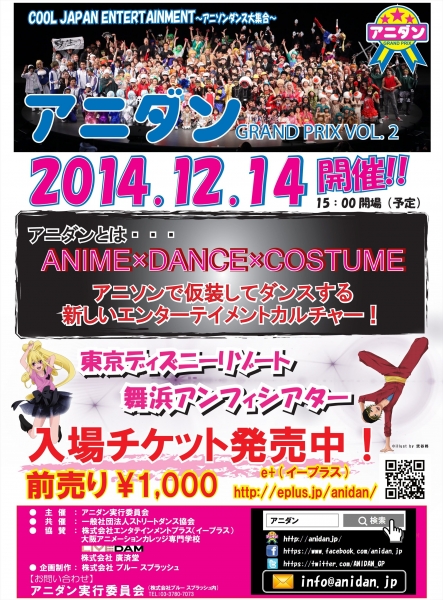 2014年12月14日(日)舞浜アンフィシアターで、アニメ・ゲームのBGMに合わせコスプレで踊るダンスコンテスト「アニダン」が行われる。