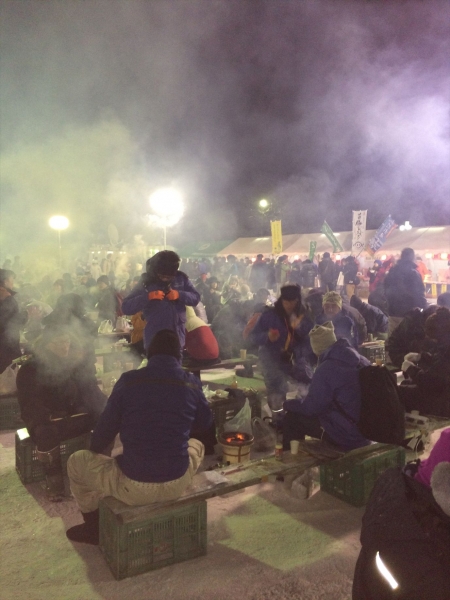 最も寒さの厳しい2月の夜空の下、大勢で七輪を囲み、煙の中、寒さと焼肉、北見らしさが同時に味わえるイベント。会場内には焼肉店等の出店もあり、購入することもできる。