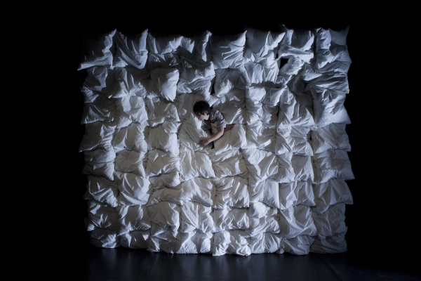 舞台上にあるのは……一つのベッド。天井にあるのは無数の枕。