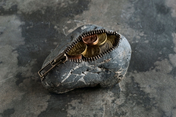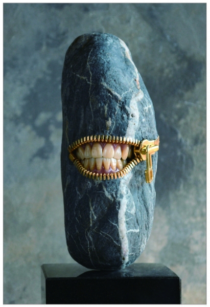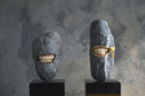 石からのぞく歯! 小銭!? 石を使用した驚きの作品。