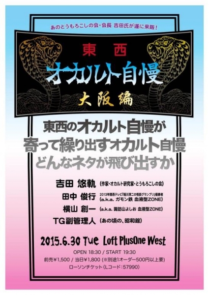 大阪のLoft PlusOne Westで開催されるイベント「東西オカルト自慢~大阪編~」。
