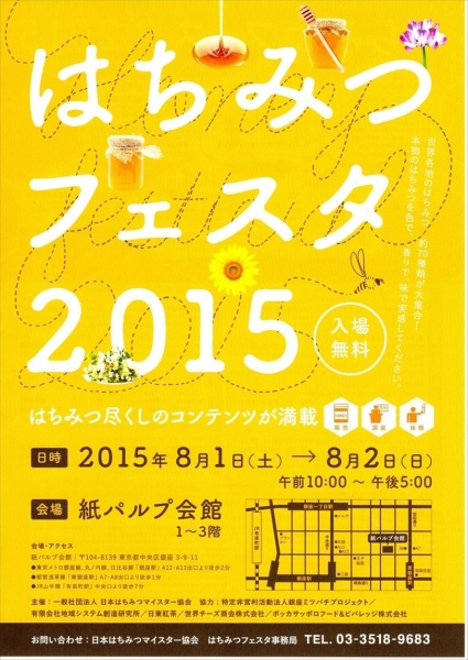 東京の紙パルプ会館で開催される「蜂蜜」がテーマのイベント「はちみつフェスタ2015」。