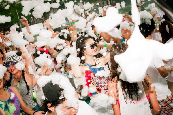 全長約3kmのコース上に設置されたバブルマシーンから、大量の泡が放出されその中を泡まみれになって走る「バブルラン」。今年の4月に初めて開催され、2日間で約2万人が参加した。コース上にはバブルゾーンが3か所設置され、イエロー、ブルー、ピンクのカラーバブルが放出されたという。