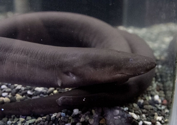 フタユビアンフューマ (ウナギに似た姿の両生類)