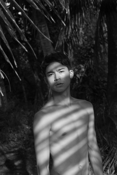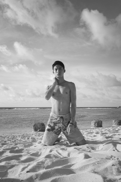 シリーズ初の男性被写体。テラハ出演俳優・菅谷をモノクロの世界におさめる。