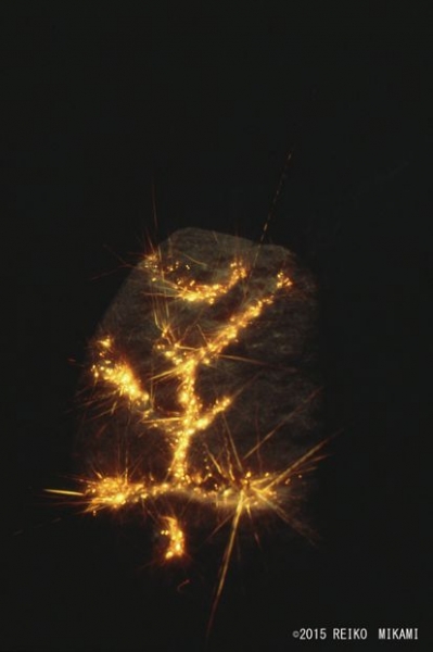 火花が生んだ文字「硄グリフ」展は、写真作品と石のインスタレーションから成り立っている。