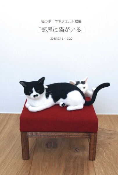 猫ラボ 羊毛フェルト猫展「部屋に猫がいる」羊毛フェルトで手のひらサイズの猫作品を作っている「猫ラボ」さん、初めての個展が開催される。