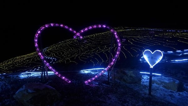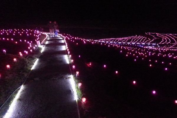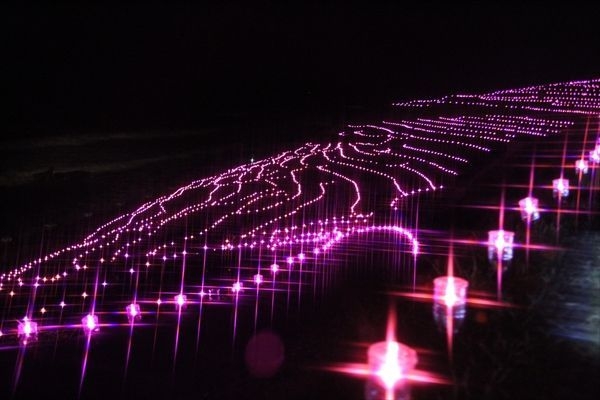 棚田のあぜ道が21,000個ものLEDで輝く。