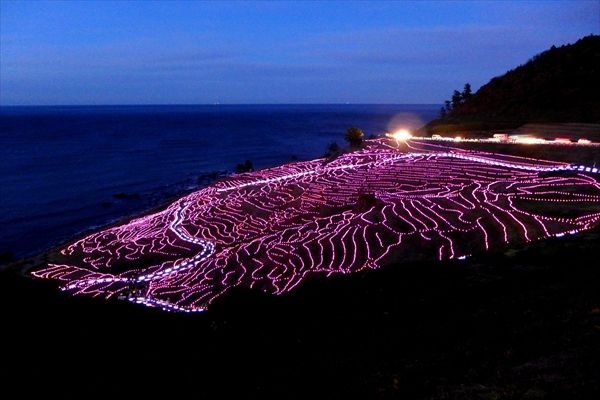 棚田を彩るイルミネーションイベント「あぜのきらめき」が、石川県輪島市の千枚田にて開催される。世界農業遺産「能登の里山里海」の象徴である、輪島市白米町の千枚田。