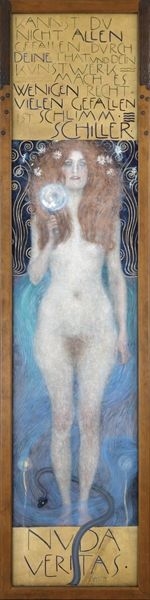 ウィーン世紀末の⻩金の画家であるグスタフ・クリムトの最高傑作《ヌーダ・ヴェリタス(真実の裸身)》。手鏡を差し出し観客を見つめ返す女神、挑発するヴィーナスの姿は、官能的で神秘的だ。