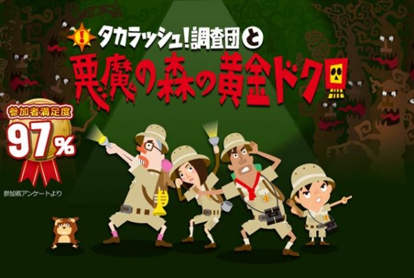 昨年の夏に新作主催イベントとして東京・名古屋・大阪の三都市を舞台に開催した室内型リアル宝探し『タカラッシュ!調査団と悪魔の森の黄金ドクロ』が再演決定。参加者は『タカラッシュ!調査団の「暗号解読班」の一員』という設定で、宝の地図などに書かれた謎や暗号を解読、宝の在り処を突き止めるというミッション型のイベント。