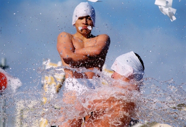 極寒の津軽海峡に飛び込むセレモニー!