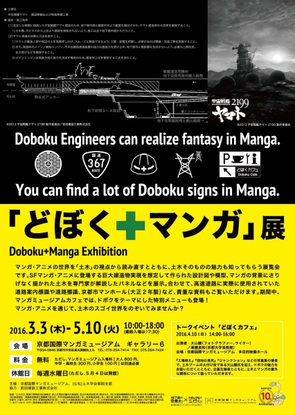 多くの人が親しむ「マンガ」・「アニメ」の世界を「土木」の視点から読み直し、土木そのものの魅力も知ってもらおうという趣旨の企画展が京都国際マンガミュージアムで開催される。SFマンガ・アニメに登場する巨大建造物実現を想定して作られた設計図や模型、マンガの背景にさりげなく描かれている土木を専門家が解説したパネルなどが紹介される。