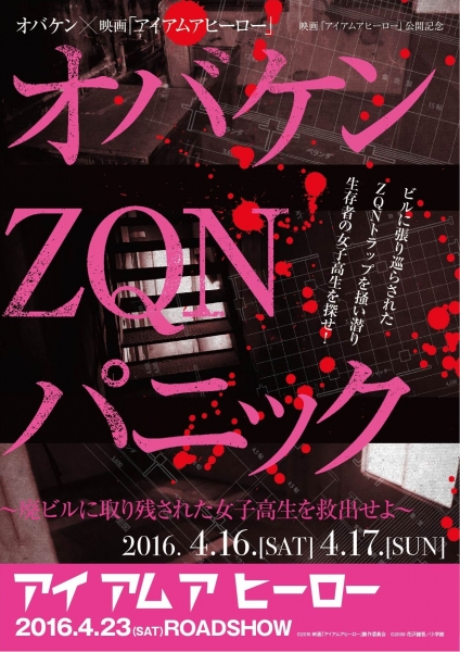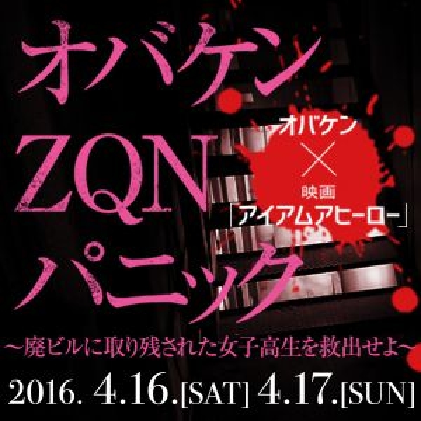 株式会社HLCが運営する方南町お化け屋敷オバケンがコラボイベントである“オバケン×アイアムアヒーロー「オバケンZQN パニック ~廃ビルに取り残された女子高生を救出せよ」”を2016 年4月16日(土)および17日(日)の二日間開催する。この企画は、花沢健吾の累計 600 万部を記録した人気コミック「アイアムアヒーロー」を原作とした映画「アイアムアヒーロー」が 4月23日(土)公開となることの記念として、映画の世界観が体感可能なミッションクリア型サバイバルホラーイベントとなる。