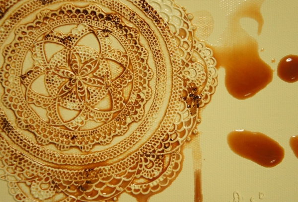 『チョコレート』をテーマにした作品展「CHOCOLOVE」が、名古屋・夢画廊で開催される。この展示は絵の具をチョコレートに見立て、しぼって線を描いた作品の紹介となる。