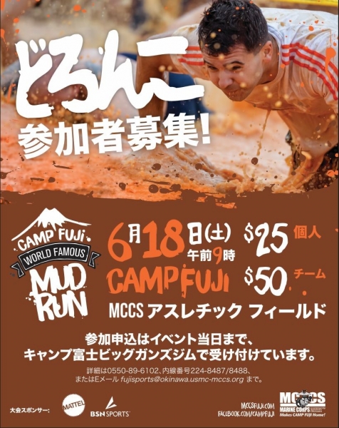 米軍海兵隊キャンプ富士MCCS アスレチックフィールドに設定された泥んこ障害物コースで、個人・団体戦競技で競い合うイベントが2016年も開催される。日本人とDODのIDを持っていれば誰でも参加可能。