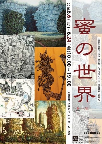 みつとは細部にわたるまで行き届いていること。すき間もないほどにぎっしり詰まっていること。また、そのさま。という意味がある。横浜のf.e.i art galleryで開催されるアートイベント。細密に・緻密に・綿密にというように、色々な意味合いがある「みつ」がテーマ。繊細に細部まで制作された、各作家独自の甘美な「蜜」の世界を紹介する。