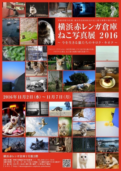 横浜赤レンガ倉庫1号館にて11月2日から7日まで、ネコをテーマにした写真展が開催される。ジャパンクリエイト株式会社が主催する「「横浜赤レンガ倉庫 ねこ写真展 2016 ~今を生きる猫たちのキロク・キオク~」」。出展者数65組70名以上、出展作品数約800点に及ぶ、史上最大規模の猫写真展だ。