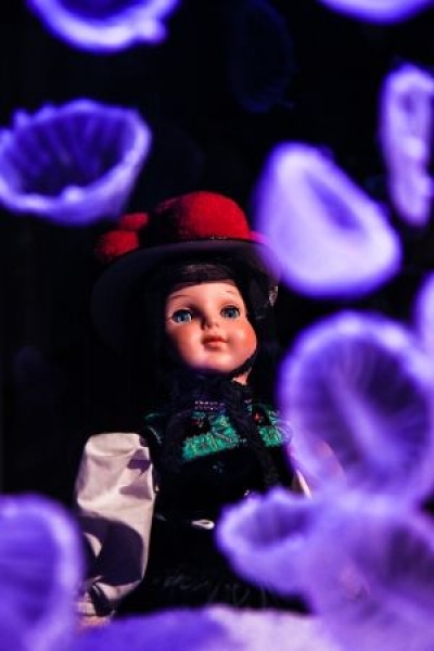 暗い部屋にふわりふわりと不思議な輝きを放ちつつ浮遊する人工クラゲと、アンティークドールたちの対話が創出する、美しくも幻想的な世界。