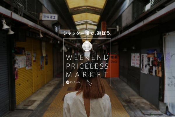 大阪・新世界にある商店街のシャッター通り。ここで毎週末『値段のない』 マーケット、「Wマーケット」が行われる。7月16日(日)にオープニングマーケットとして単日開催され、9月より毎週末開催予定。普段はシャッター街となっている商店街に、日替わりでさまざまな店舗が出店し、値段はその場で決めるというユニークな内容となっている。