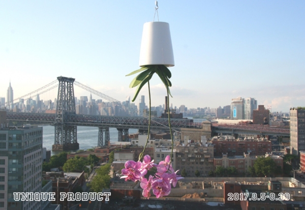つぶれた紙コップのようなカップ、逆さプランターなど、ユニークなグッズ