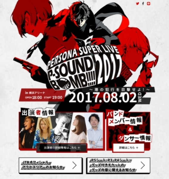 アトラスの人気ジュブナイルRPG『ペルソナ』シリーズ。このたび、『ペルソナ』音楽がテーマのイベント「PERSONA SUPER LIVE P-SOUND BOMB !!!! 2017~港の犯行を目撃せよ!~」が横浜アリーナで開催される。出演アーティスト&ペルソナバンドメンバー、出演ダンサーの公開、また、グッズ付きチケットのグッズ内容、本公演と合わせて実施するJTBオフィシャルアクセスツアーに関しての詳細を公開している。『ペルソナ5』よりボーカリストとして参加した「Lyn」を加えて、さらに熱い時間が展開される。