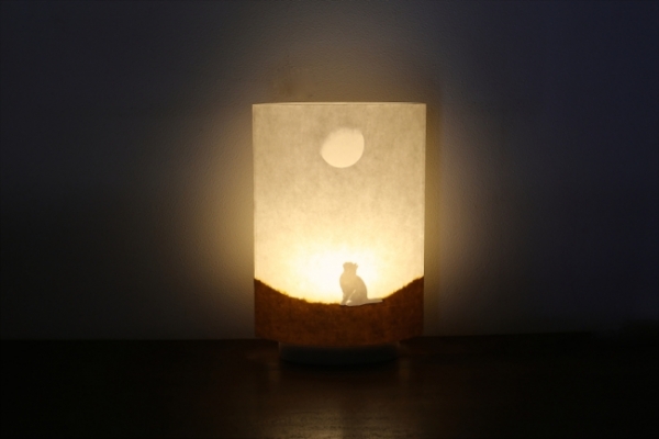 猫と「森」「星」「月」など自然をモチーフにした幻想的なランプ。漉きの和紙に光を灯すと空間が優しく包まれる。