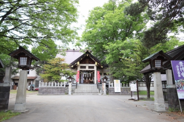 ホテルを出て最初に向かうのは、車で約10分の距離にある「豊平神社」。車通りの多い住宅街の中にある1500坪ほどの小さな神社であり、足を踏み入れれば心地よい静けさを感じることができる。