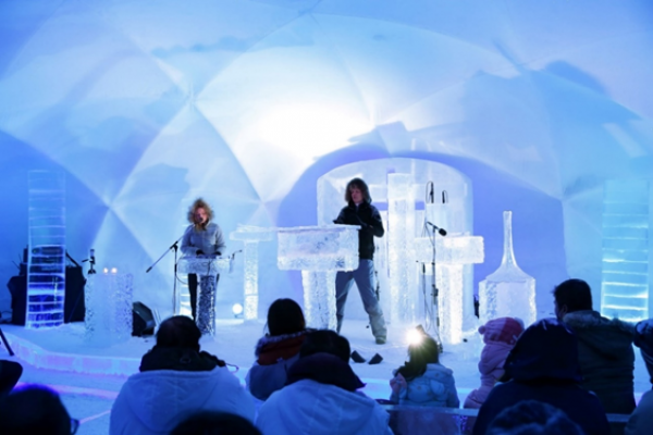 繊細な音色がドームの中に響き渡る。高い音が響き渡る「アイスホルン」や、木琴をイメージして作られた「アイスザイロフォン」などを演奏。