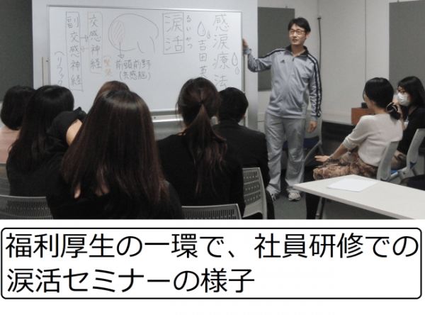 2020年9月26日に東京・御徒町のセロトニン道場で『新型コロナウィルス感染症予防対策に涙活のすすめ』と題して、涙に関する講義、泣ける映像鑑賞、泣き言を吐き出しスッキリしてもらうワークショップが開催される。<内容>